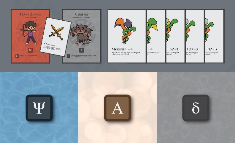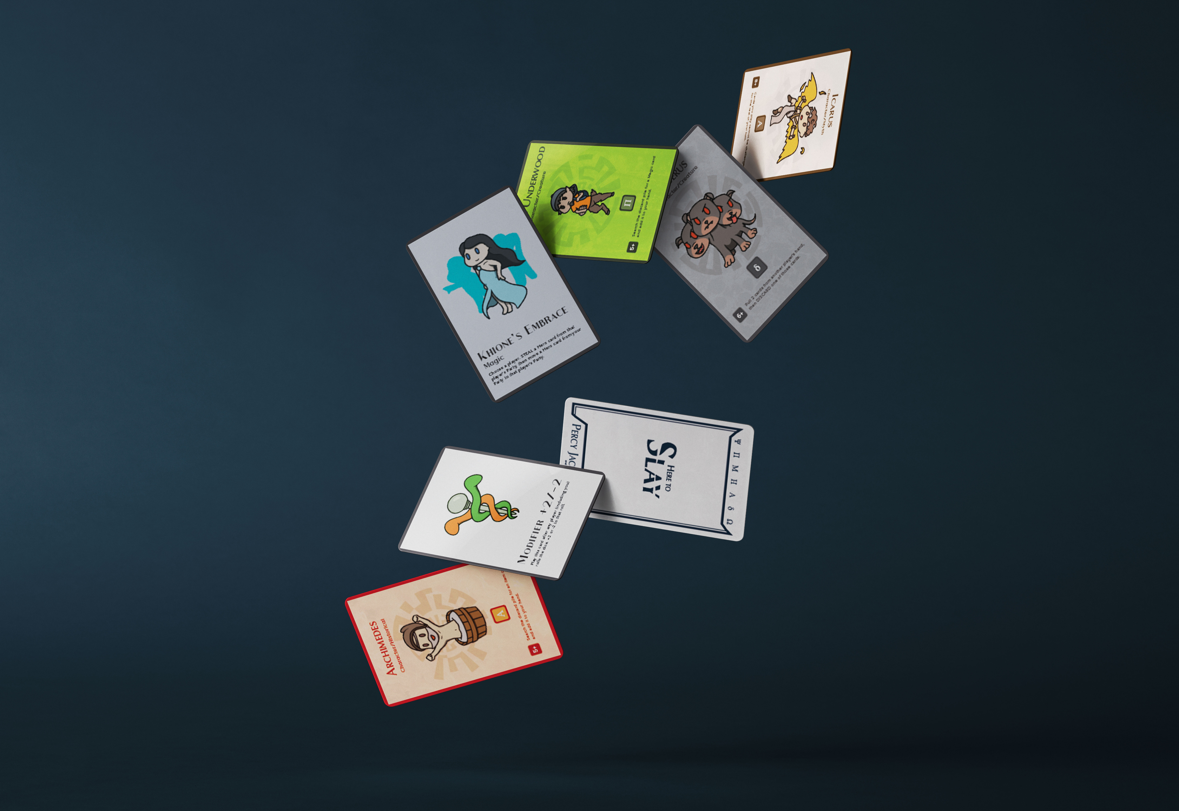 Branding for this project was about capturing the essence of the Percy Jackson universe while making the game feel distinct and approachable. I focused on creating a cohesive visual identity that reflected the story’s adventurous and mythical tone in a way where each card felt like it was part of a single set. I took inspiration from the original Greco-Roman mythology and arts, as well as the design style of the classic Here to Slay.